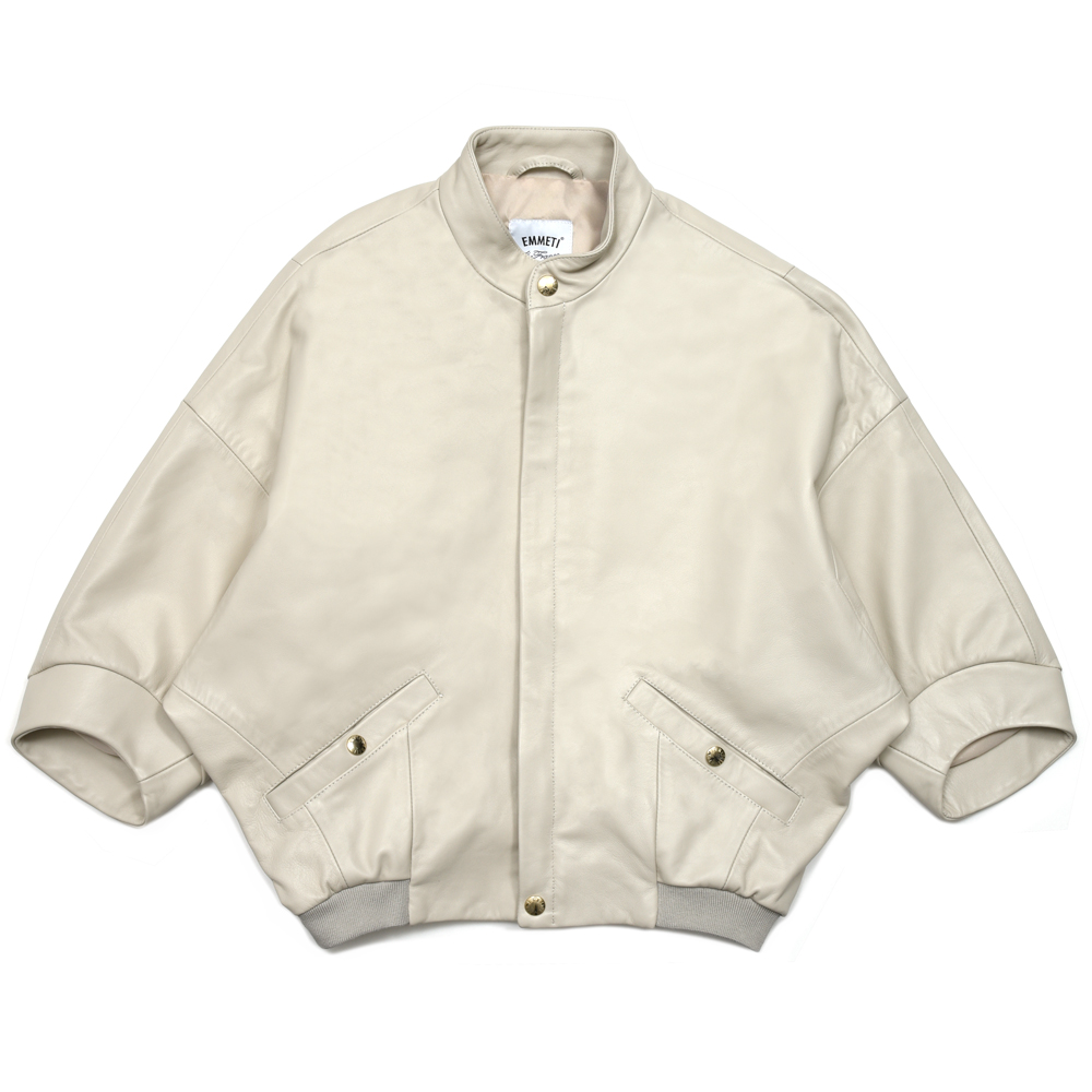 ■About items EMMETI(エンメティ)PAIGE GOLD ラムレザー ジップショートブルゾン 上質なラムレザーを使用したショートブルゾン。 体に自然に馴染みしなやかで軽やかな着心地。 丸みのある立体的なシルエットと、ゆとりを持たせたドルマンスリーブが特徴。 ハードになりがちなレザーブルゾンに柔らかさとモダンな抜け感をプラスしています。 計算されたフォルムにより、どの角度から見ても美しい立体感を演出。 ショート丈のバランスは、パンツにもスカートにも合わせやすく、スタイリングを選ばない万能さも魅力。 シンプルながら存在感のある一着で、日常から特別なシーンまで幅広く活躍。 ■Item Information 着丈 身幅 裄丈 36 53 127 63 38 54 128 64 ※単位はcmです。詳しいサイズはコチラ 素材 表地:羊革 / リブ部分 コットン82% ナイロン14% ポリウレタン4%裏地:ポリエステル95% ポリウレタン5% 生産国 イタリア モデル PAIGE 付属品・備考 スナップボタン モデル着用サイズ 36 / モデル身長 164cm・体重44kg ■Color Variation off white ■Brand EMMETI/エンメティ EMMETI(エンメティ)は、1975年にフィレンツェ近郊の町ヴィンチで毛皮を使ったファーコートとファージャケットの工房として創業しました。 初代ヌンツィオは、二人の子供達マッシモのM(伊語のエンメ)とティーナのT(伊語のティ)をとり、社名としました。 現在は次代を託されたマッシモとティーナに引き継がれ今日に至っています。 エンメティのコンセプトは、「エレガンテ・スポルティーヴォ」。 スポーティーでありながらエレガンスを忘れないという意味のスタイルです。 このブランドの商品をもっとみる ■Guide お買い物ガイド サイズガイド 配送について 店頭受取について 返品交換について よくある質問